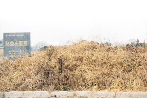 2003年11月某日,记者到昌江黎族自治县昌化镇旧县村采访时,听说村子北面300米处有一座孤坟,是南宋宰相赵鼎的坟茔,前去一看,只见一堆黄土之上,一片荒草萋萋,并无任何标识———连一座墓碑都没有。当时的昌江县志办主任周文奇副研究员告诉记者,赵鼎墓坐北朝南,原先是有墓碑的,但在“文革”中被毁,后来在旧县村西边的渡槽中发现一段残碑,长约120厘米,宽60厘米,厚8厘米,中间为楷体阴刻的“赵太公之墓”,此后残碑也不知去向。