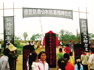 当时,记者报道了此事,引起了旧县村热心人士的关注。在该村外出人员关远禹等人的发动下,从2004年5月开始,他们自筹资金5000多元,收集和整理有关赵鼎的史料,准备重新为赵鼎墓立碑。