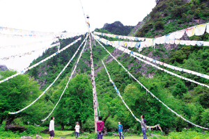 神瀑位于梅里雪山神女峰脚下,是梅里雪山融水形成的一道不很大的瀑布。每年都有很多当地人会慕名前往转瀑祈福,绕瀑布顺时针转三圈,再取一壶山水自饮,在转瀑时,穿的越少,表示越虔诚。据说,好人转瀑会看到彩虹,坏人则会滴水不沾。带着寻找彩虹的梦想我们出发去神瀑,路程不算太艰难,除了快到神瀑时的那段坎坷的石头路。经过一树丛和经幡后,我们到达神瀑脚下,同样是神灵栖息之地,这里就比冰湖热闹很多,瀑布的哗哗声,游客的喧嚣声,甚至小孩子的哭叫声。