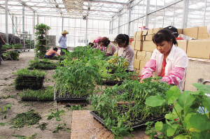 截至今年9月,菜农向研发中心预定的叶菜种苗已经突破200万株,“冬种”的圣女果苗也接到了100株订单。记者也在生产车间看到,工作人员正在嫁接菜苗,偌大的育苗车间圣女果幼苗正在茁壮成长,加紧为“冬种”做着准备。“目前我们推广进入市场的,都已经在北方试验育种多年的优良品种,生长周期短,抗病性强。”周天宇说,通过研发中心的设施优势,帮助菜农转变传统的种植模式,引导菜农转产。