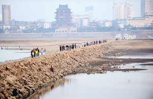 受降雨偏少、河床下切等因素影响,赣江水位持续快速下降。当日18时,赣江南昌段出现12.27米的低水位极值,打破了2012年1月2日12.34米的历史最低记录。目前,赣江南昌段流量约为558立方米每秒,正逐步接近520立方米每秒的枯警流量。针对当前江河低水位造成的影响,江西要求各地加强用水调度,确保沿江城乡生产生活用水。 新华社发