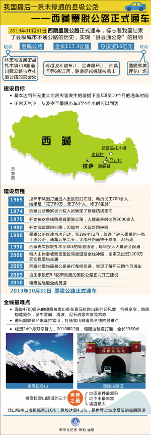 2009年4月,投资达9.5亿元的墨脱公路新改建工程全线开工。其间,建设者们不断破解雪崩、塌方、泥石流等施工技术难题,将墨脱公路向“高原孤岛”挺进。