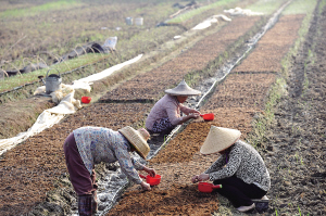 10月26日,琼海万泉镇的农民在培育辣椒苗。“寒露”过后,农民积极投入冬季瓜菜生产,田野里到处可见人们忙碌的身影。