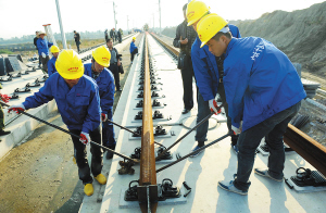 西南地区首条高铁加快铺轨