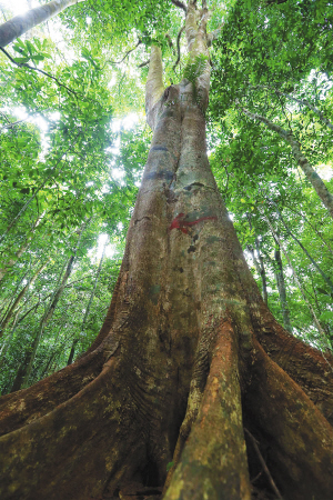 说到青皮树,就不能不说到兴隆凤凰山低海拔热带原始雨林。负责看管凤凰山雨林的蔡德光介绍,低海拔热带雨林是世界上罕见的,它的必备标志就是青皮树;没有青皮树,就无所谓低海拔热带雨林。