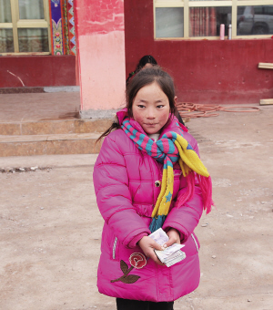 囊谦县毛庄乡的才旺曲珍便是这126名受助孤儿之一,她非常瘦小,穿着一件浅紫色的小棉袄、头发打理得很干净。她家里只有病重的母亲,由于要一边照顾母亲一边放牦牛养家,所以她11岁了还没有读书,不会说汉语。当她拿到这笔成长基金,海航的一位员工问她要怎么花时,她说:“想给妈妈治病。”而当问到她想不想读书时,她低头不语。那一刻,令身边的人心酸不已。