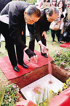 47年后,一代翻译巨匠傅雷先生与夫人朱梅馥终于魂归故里。近日,伴随着贝多芬《命运交响曲》的乐声,在傅雷的两个儿子傅聪、傅敏以及众家属的护送下,傅雷及夫人朱梅馥的骨灰落葬上海浦东福寿园海港陵园,长眠于浦东故里,实现了中国传统意义上的叶落归根。