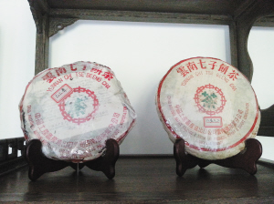 张鹏介绍,从年代上分,普洱应分为三个级别:一是号级茶,它是从清朝开始生产,当时普洱茶都是一些商号生产,所以称为号级茶。一直到1937年日本占领了缅甸,茶路被阻断,云南的茶叶产业受到严重影响,号级茶的生产就此中断。创始于清朝光绪六年(公元1880年)的宋聘号,是公认百年老茶中的极品,为普洱茶收藏家的顶级追求。在这期间的普洱茶都是在传统工艺下制作的,选料也比较好,更重要的是它们储藏的年份够长,很适合开汤饮用,但因存世量极少,故极为珍贵,往往重金难求;其次是印级茶,解放初期,普洱茶由中国茶叶进出口总公司统一产销,上面都盖有“中茶”印记,所以叫印级茶,这些茶到文革后期停止生产,代表作如“七子红印、黄印”等。印级茶不仅是极具收藏价值的珍品,也是各路藏家茶友竞相收藏的主要目标,因为优质的普洱茶在存够年份之后,其品质完全能够达到上乘品鉴的价值。三是从文革后期到现在生产的普洱茶,也有部分具有相当不错的收藏价值,如“73青饼”、“8582青饼,”选材用料上也是十分精良,加之已有30年的陈韵,亦属十分难得。