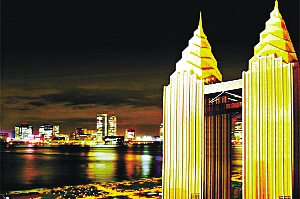 重庆喜来登大酒店 说起重庆的“土豪金”建筑,第一个想到的,绝对是位于南滨路78号的“双子楼”,大楼外观呈金色、四周还有几座金色雕塑。无论是本地人还是外地人,无疑都会将“双子楼”看做南滨路上的地标性建筑。“双子楼”中的一栋是喜来登酒店,有豪华客房、餐厅、会议室;另一栋国际金融中心,则是高档写字楼。