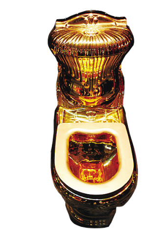 在深圳国际顶级私人物品展上展出的纯金马桶。