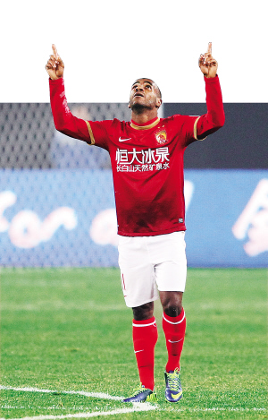 广州恒大队球员穆里奇庆祝进球。 新华社发