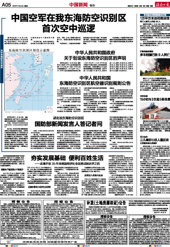 中华人民共和国政府 关于划设东海防空识别区的声明