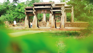 村子给人的印象是古老而浑朴的,厚重而深沉的。路边石牌、石门、石桥,以及破旧不堪的老屋,都用年代古老而风化斑驳的苍颜,诉说着年岁的久远与沧桑。漫步村中,有许多老人或蹲或坐,神情怡然。放眼望去,一位农人正赶着一辆牛车慢悠悠地走在回家的路上。