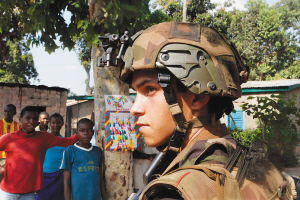 据法国媒体7日报道,法军当天向中非共和国急速增派了200多名士兵,参与在当地的干预行动。与此同时,在中非共和国首都班吉,驻扎当地的法军加强了巡逻,并有法军战斗机和直升机在低空飞行。 新华社/路透