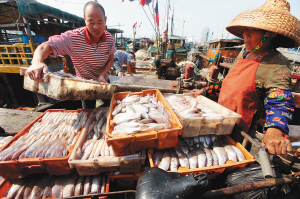 受今年第30号强台风“海燕”影响而归港避风的远海捕捞渔船,趁近期连续晴好天气出海捕捞,相继满载归来,一筐筐鲜活的渔货运抵码头,供应各地市场。