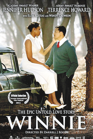 除此之外,2011年的《温妮》也是一部话题之作。这部电影的主角是曼德拉的第二任妻子,1958年曼德拉与她一见钟情,走入婚姻殿堂。她曾在曼德拉入狱期间不离不弃,为了帮他出狱四处奔走活动,并几次入狱,也是一名反对种族隔离的斗士,由此赢得黑人爱戴,被誉为“黑人之母”。但温妮却在曼德拉出狱之后逐渐坠入迷途,1991年她因涉嫌包庇一位虐杀14岁少年的前保镖被判处6年监禁徒刑,2003年她又因盗窃和欺诈等共计68项罪名而被判入狱5年。1996年,曼德拉痛心疾首却又无可奈何地与她离婚。这部传记片因其敏感性而备受关注,原型温妮·曼德拉更公开发表斥责;不过对于了解曼德拉而言,本片必不可少,毕竟对准曼德拉私人感情生活是极其难得的,褪去他圣人光环的一面,这部电影里泰伦斯·霍华德所扮演的曼德拉,更显得有血有肉。