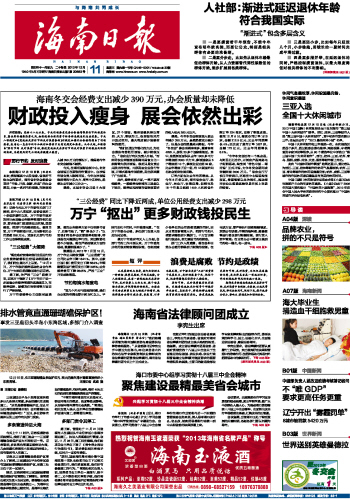 海南日报 头版 001 2013-12-111 2013年12月11日 星期三