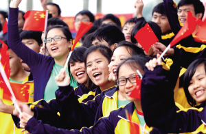 “砰———”8时整,随着5支发令枪同时扣响扳机,早已排列在起跑线上的选手们向前奔去,赛道两旁的观众挥舞着国旗或彩旗,齐声呐喊助威。