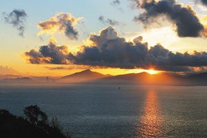 尚未走出大海之美的美好体验,人们又将沉浸在新年日出的惊喜中。当日出的时间越来越近,离海平面一段距离的天边,新年的第一轮太阳将会冲破云雾,喷薄而出。红日慢慢变大变圆,像小孩子的笑脸,伴着越来越快的升腾,一轮红日终于冲破层层云雾,放射出万丈光芒。