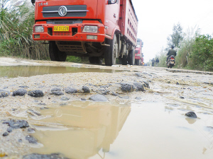 “这都是拉沙石的超限超载车惹的祸,10轮、12轮的重载车把好端端的路面压坏了。”海口市龙泉镇椰子头村道班班长周乃进说。