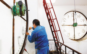 据了解,钟楼是海口八景之一,1929年建成,1987年改建。钟楼改建后,四面塔钟使用至今,配件已严重老化,这次改造将由原四面塔钟改造为Φ2.0m欧式四面LED内照明塔钟,大钟的马达也将更新。旧塔钟使用人工校时,新塔钟将增加卫星自动调整时间误差功能。预计新塔钟将于本月30日安装完毕。 本报记者 李英挺 摄