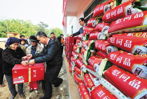 2日上午,新年上班第一天,海口市文体局和爱心企业一行人带着4000多公斤大米、800多公斤食用油和水果等,奔赴革命老区海口市新坡镇仁南村扑公园村民小组慰问困难村民。随后又马不停蹄地赶往海口市滨海新村、海甸岛等地慰问困难大学生、困难党员,查民心,解民意,帮助群众解决实际困难。本报记者 古月 摄