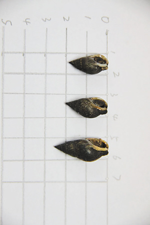 织纹螺的外形特征(如左上图,本报记者 侯赛 通讯员 陈定胜 摄)表现为尾部较尖,细长,长度约为1厘米、宽度约为0.5厘米,约指甲盖大小。食用织纹螺引起中毒的主要原因是其含有河豚毒素,食用后可产生头晕、呕吐、口唇及手指麻木等中毒症状。