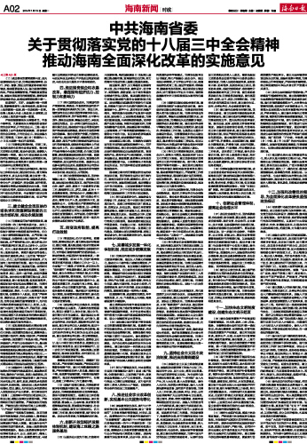 中共海南省委 关于贯彻落实党的十八届三中全会精神 推动海南全面深化改革的实施意见