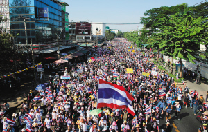 民主党前议员伊萨叻·颂猜带领的一支示威者队伍12日占领了曼谷叻抛路口。叻抛是曼谷的一个老城区,商业发达。