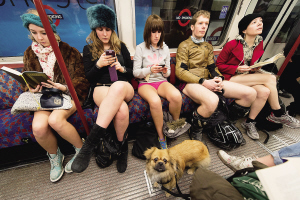 “地铁无裤日”由美国民间组织“处处即兴”2002年发起。根据活动规则,参与者按照事先约定的时间和路线集合,不穿裤子搭乘地铁,寻求轰动和搞笑效果。
