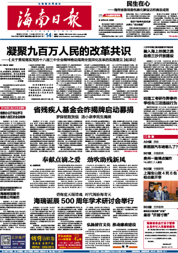 海南日报 头版 001 2014-01-141 2014年01月14日 星期二