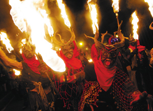 “魔鬼跑火节”是西班牙加泰罗尼亚地区的传统节日。这一天,人们打扮成魔鬼,手持火把或烟花,尽情狂欢。 新华社/法新