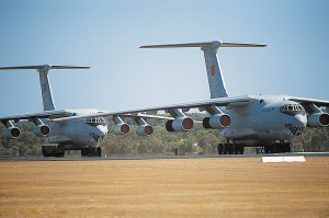 3月23日,两架中国空军飞机在澳大利亚珀斯以北的皮尔斯空军基地待命。