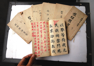 除了搜集资料,刘涛还搜集旧书。他有一种方法是“四面出击”,在网上及国外的朋友帮助下收集,同时还自费去东南亚等国家考察。他把自己当成百年骑楼老街的守望者,这几年收集的各种物件都与骑楼有关:老照片、老报纸、老街老商行的账簿,印章、汇票;甚至还有民国时期老师认真批改过的国语作业本。