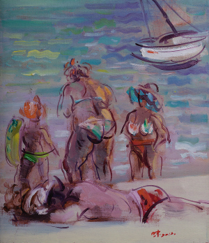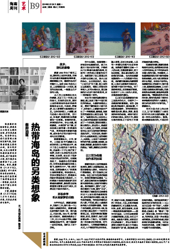在中央美院,他像海绵一样吸取专业绘画知识,读了大量关于美术史的书籍,并得到朱乃正等著名教授的指导,在拥有一定的展示图像的技巧后,他更坚定了自己要通过艺术创作去记录三亚,展示三亚的决心,从北京回来后,他以“三亚日记”为主题,将三亚的过去和现在,海滩上所发生的事和人,还有大海本身,通过绘画的方式进行创作和思考,这一坚持就是十来年。