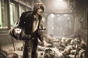 列车的精妙设计在于,车厢即代表阶级(类似于我们坐飞机的头等舱、商务舱和经济舱),最末端的车厢生存着整个列车最底层的无产阶级,他们生活在狭小封闭肮脏的空间,一举一动受严格管制,只能无条件接受上层权力阶级的各项要求。列车的统治者生活在第一节车厢,他恩威并用,通过神话自己与永动机,给上层阶级的孩子们洗脑,用酷刑压制下层阶级的躁动、不满和反抗。这俨然是一幅人类集权社会的缩影。《雪国列车》构建的世界似曾相识,很容易让我们想到乔治·奥威尔的《1984》,难怪有人说本片有着奥威尔式的寓言气质。