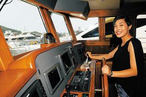 来自湖南的漂亮姑娘彭婷,凭着对大海与游艇的热爱,成为三亚第一位考上游艇驾照的女性———