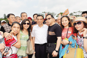 | 4月11日,在海口东寨港红树林自然保护区,李克强总理与来自全国各地的游客合影留念。 |