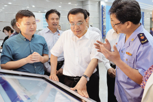 | 4月11日,在海口市工商行政管理局的电子查询台前,李克强总理仔细了解企业信用信息等情况。