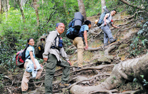 这两天,利用周末攀登五指山的游客累计有16批约200多人次。五指山以其独特的自然风光、清新的空气吸引着越来越多热爱大自然的旅游者。 本报记者 苏建强 摄