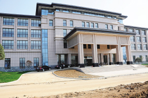 这个位于县城南部城关镇炳公村的围合式建筑群,以会议中心为中心,四栋办公楼落于四角,侧面一栋楼是信访中心楼。