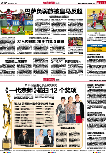 海南日报 体育新闻综合 012 2014-04-141 2014年04月14日 星期一