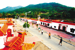 4月24日,在昌江黎族自治县七叉镇南在村,村民们正沉浸于搬入新房的喜悦之中,35户黎族村民陆续从以前的茅草屋搬进了新居。据了解,南在村是昌江县的贫困村,处于较偏远的黎族地区,去年政府出资为村民们建了新房,帮农民脱贫致富。图为南在村的新房新村貌。见习记者 陈元才 摄