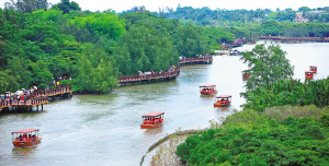 4月26日,海口红树林旅游区人气火爆,众多游客纷至沓来。记者从海口市有关部门获悉,“五一”期间红树林将继续对游客免费开放旅游。