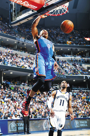 雷霆队赢得较为轻松,客场以104:84大胜孟菲斯灰熊队。头号球星杜兰特在这场比赛前受到了俄克拉荷马当地报纸的质疑,后者在头条位置将他称作“不稳定先生”,不过“阿杜”本场用36分和10个篮板的数据做出了回应。
