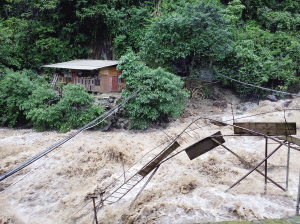 当日记者从云南省福贡县委宣传部获悉,由于持续降雨,5月10日8时13分,上帕镇腊吐底河河水暴涨,造成重大山洪灾害。经初步核实统计,山洪灾害已造成房屋损毁14栋,冲毁桥梁2座、碎石厂2家,造成腊吐底河电站被淹、冲毁防洪江堤325米,造成怒江西岸片区约500户居民电力中断,暂无人员伤亡报告,目前抢险救灾工作正在紧张有序地开展。新华社发