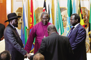 签署协议后,基尔与马沙尔握手,然后一同祈祷。东非政府间发展组织(伊加特)首席调解员、埃塞俄比亚前外长塞尤姆·梅斯芬告诉媒体记者,两人还受到大家的祝贺。