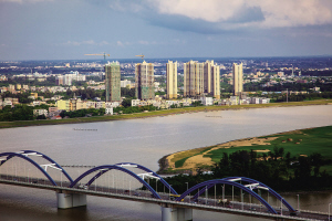 5月8日,海口南渡江畔一景。如今,琼州大桥、海新大桥、海瑞大桥等南渡江上的几座大桥将海口主城区与江东片区联系在了一起,东西两岸发展日新月异。