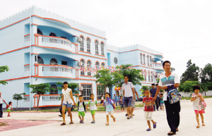 近年来,东方市加大农村学前教育投入,出资670万元建14所乡镇幼儿园。目前,已有3所幼儿园投入使用,两所刚竣工,还有9所正在建设中,基本实现每个乡镇都有公办幼儿园。图为家长们陆续来到东方市新龙镇中心幼儿园接孩子回家,身后就是漂亮的幼儿园。 本报记者 苏晓杰 特约记者 高智 摄