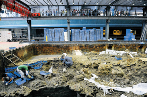 观众在广东海上丝绸之路博物馆观看“南海一号”发掘(5月15日摄)。